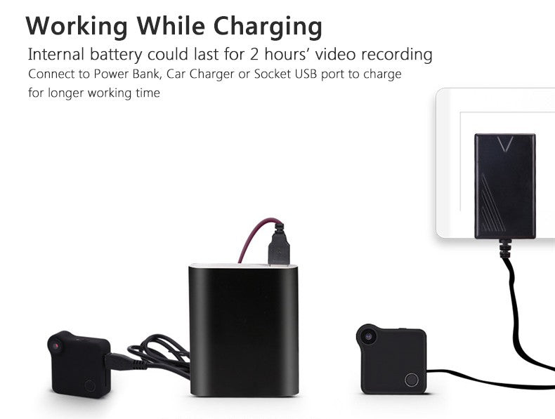 Using the intuitive app, available on both iOS and Android, you're able to stream real-time video. The Mini Wireless IP Camera makes home and office monitoring on the go easy for everyone. With the motion detection, loop recording, and time lapse features you will never run out of space. But don't let its size fool you, the Built-in 600mAh will last you for up to 2-3 hours with non-stop recording. And the best thing is that you can attach it to anything like your clothes, backpack or by using the super powerful magnet you can even attach it to your bike, refrigerator, or